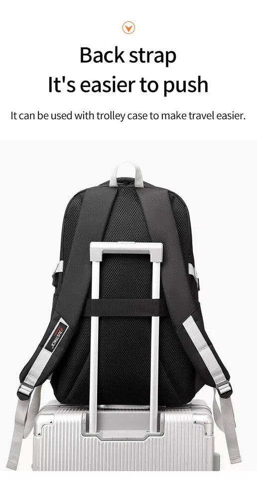 The back of the bag comes with a rear luggage strap that can be used in combination with rolling luggage.