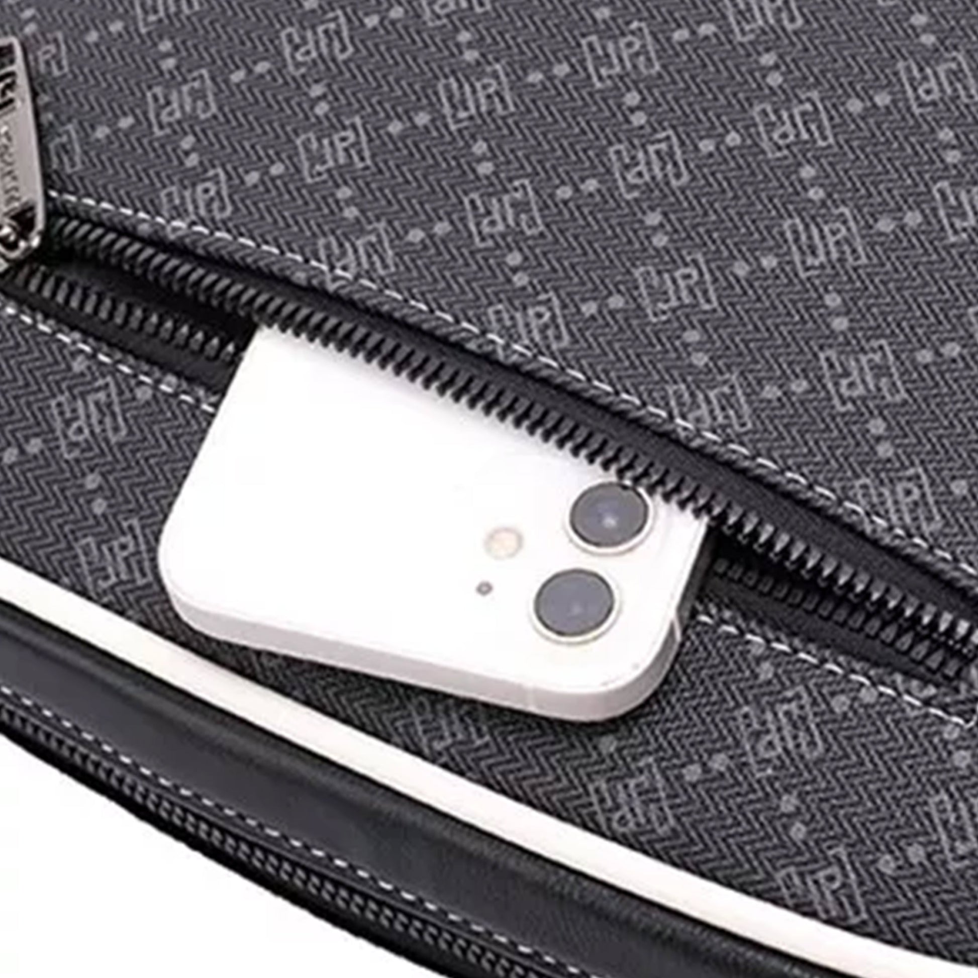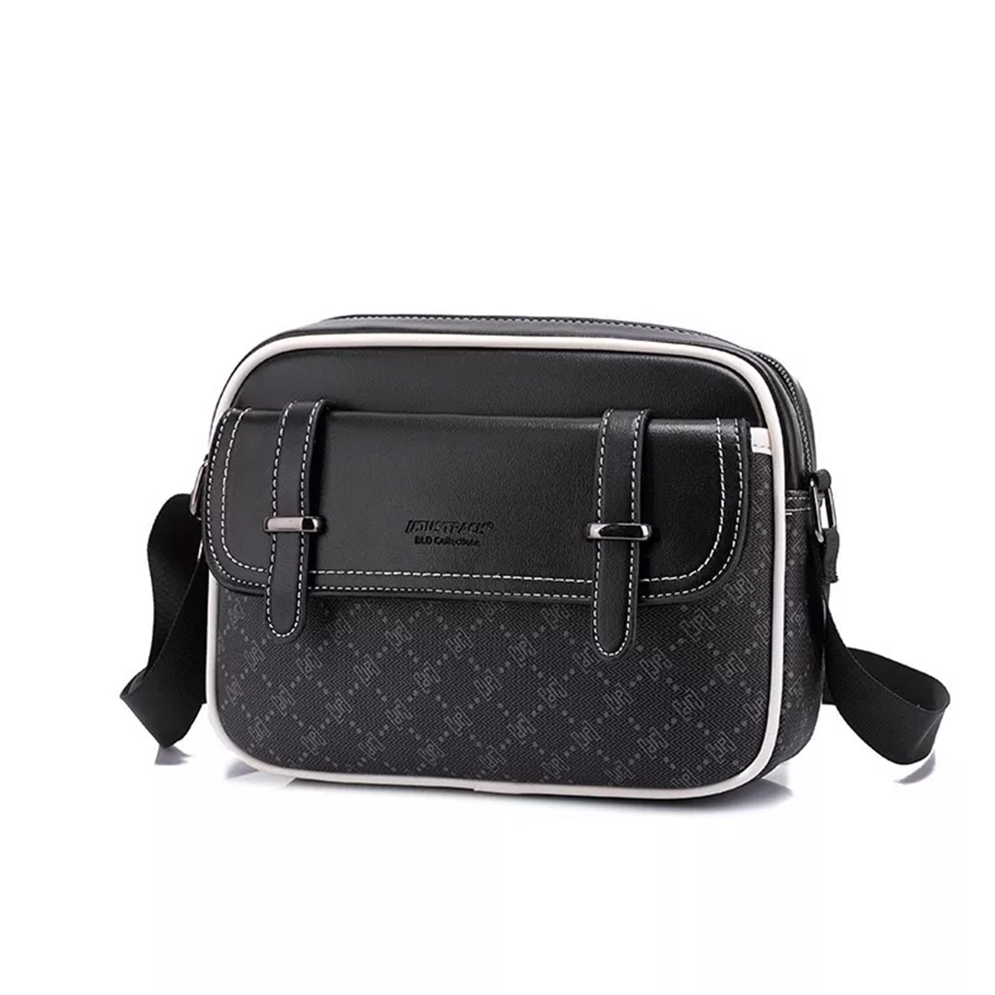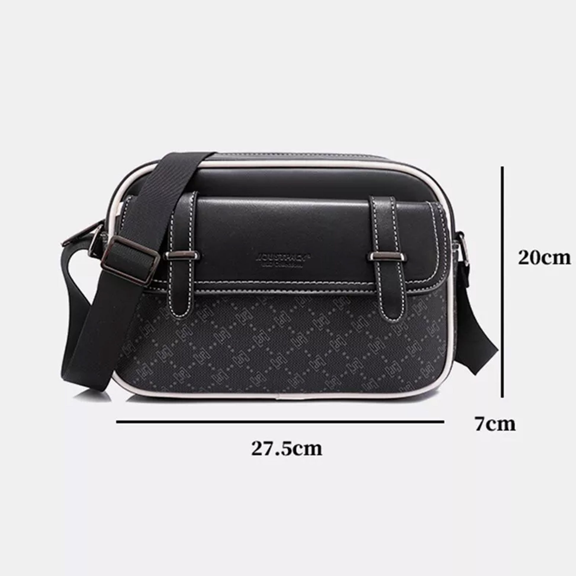 A compact crossbody that packs style and function into one. This sleek side bag is crafted from durable, water-resistant PVC with contrast stitching and subtle pattern detailing for a refined urban look.