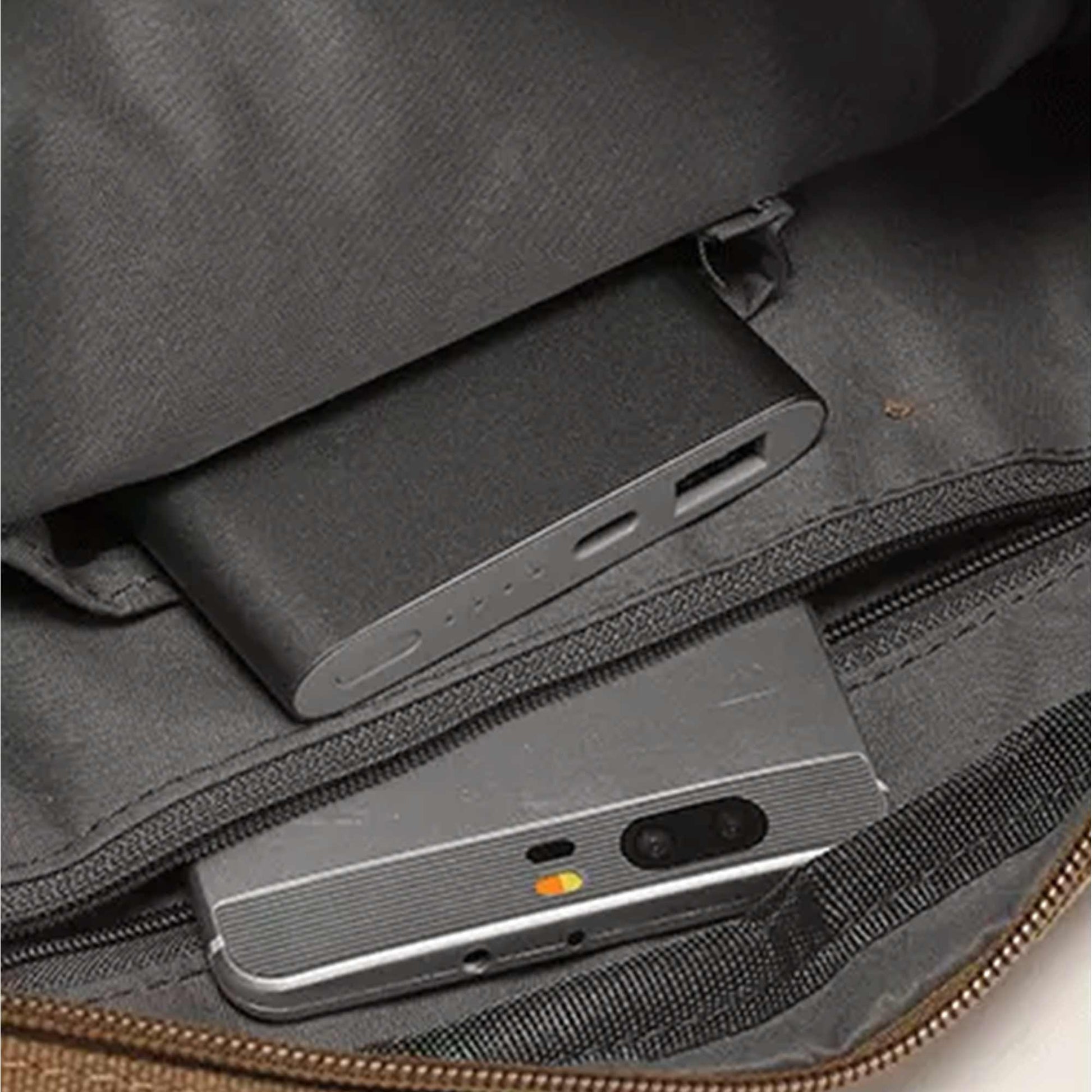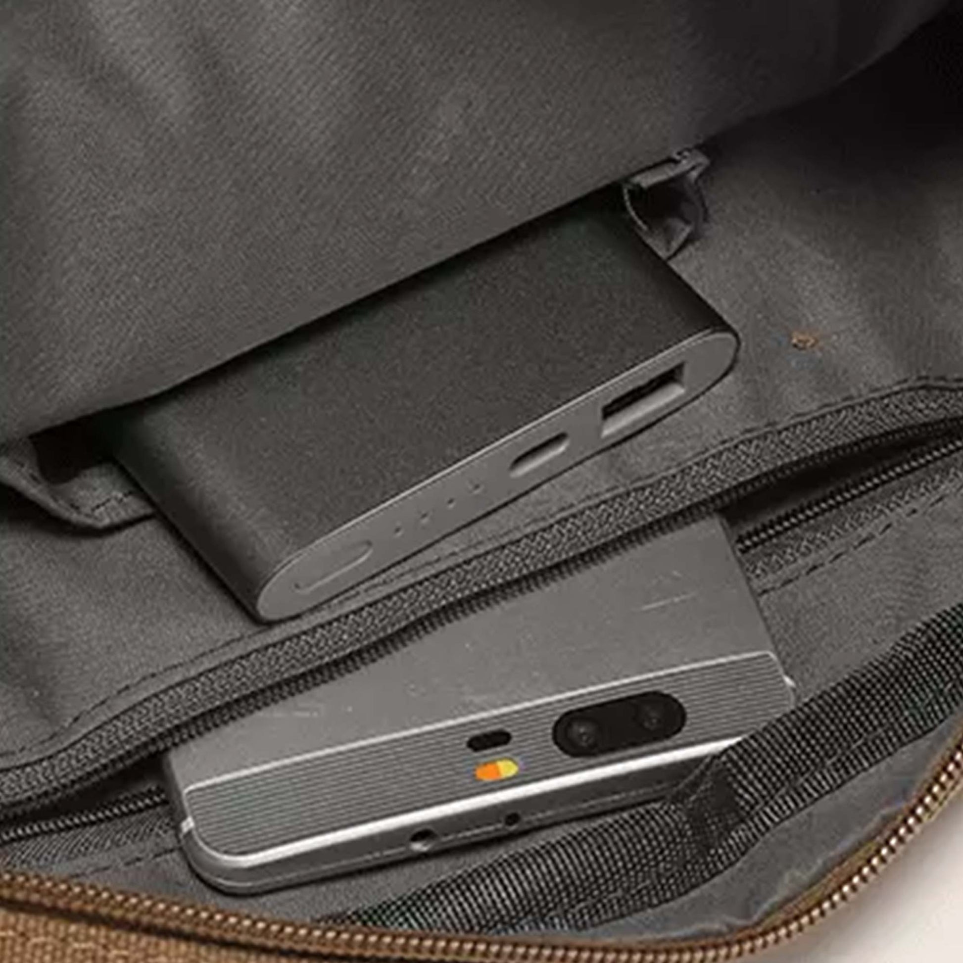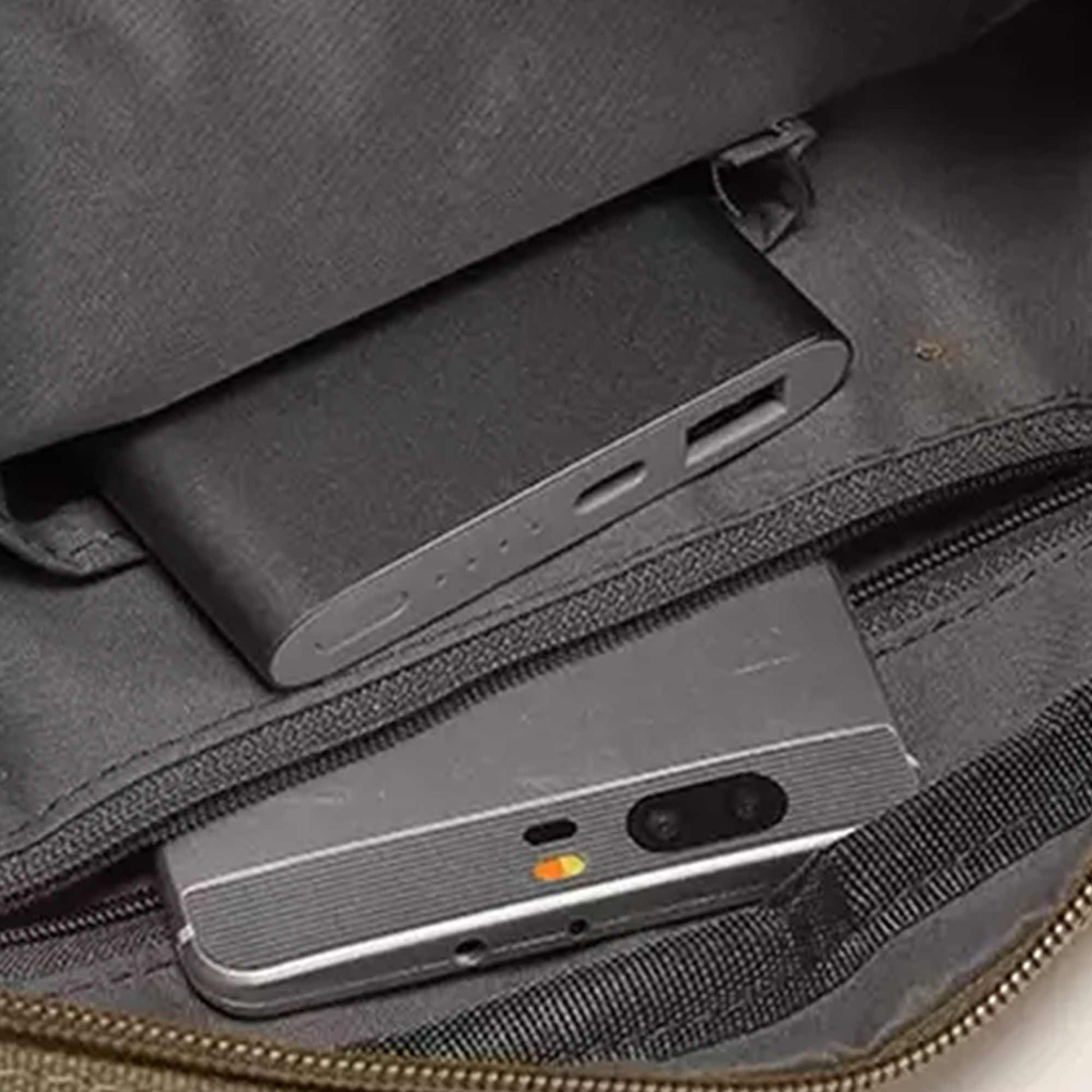 Lightweight, compact, underseat-friendly, adjustable strap, grab handle, zipped pockets