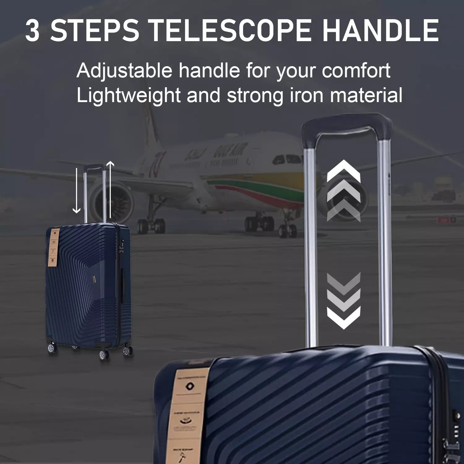- A retractable handle eases maneuverability, push-button locking handle offer the best of modern-day luxury.